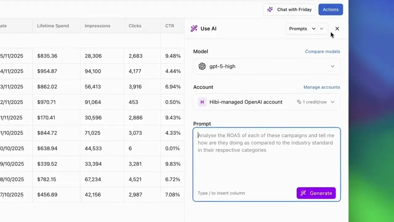 Bring paid campaign data, attribution, and internal data in workbooks without engineering effort. Ask and add anything with AI enrichment.